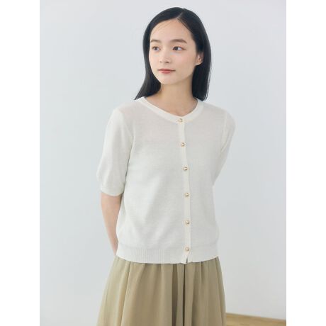 ゴールドのボタンがアクセントの半袖サマーニットカーディガン