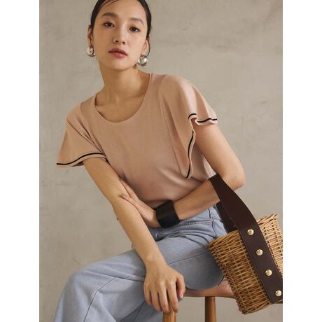 ふわりと広がるフレアスリーブが女性らしい印象のニットトップス。袖口のバイカラーデザインが、アクセントをプラスしてくれます。カジュアルなデニムにもフェミニンなスカートにも合わせやすく、様々なスタイリングが楽しめるアイテムです。