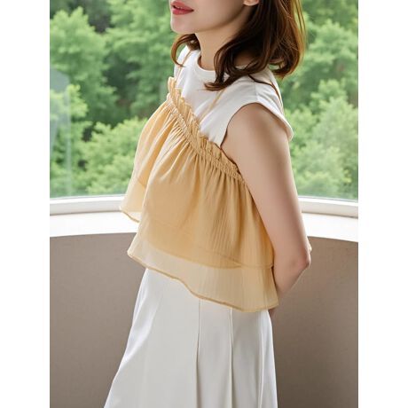 ギャザーデザインがフェミニンな楊柳ビスチェ