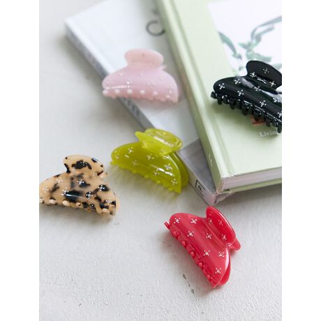 キラキラとしたビジューが付いたミニヘアクリップ。小さめのサイズ感が可愛く、ヘアアレンジに取り入れるだけで華やかさをプラスしてくれます。カジュアルにもきれいめにも合わせやすく、さまざまなスタイリングに活躍してくれるアイテムです。