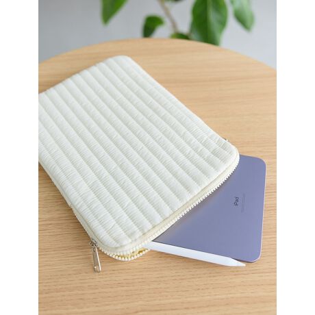 ふんわりとしたキルティングデザインが目を惹くタブレットケース。11インチ対応のサイズ感で、すっきりとしたフォルムながらも中綿が入っているので安心して持ち運べます。どんなスタイルにも合わせやすく、オンオフ問わず幅広いシーンで活躍します。