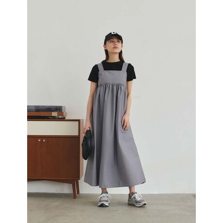 女性らしいふんわりとしたシルエットが魅力のエプロンワンピース