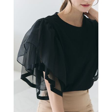 オーガンジーのフリル袖が女性らしいドッキングトップス