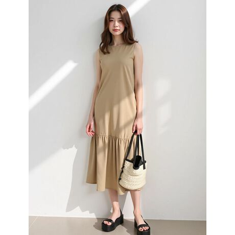 裾広がりのマーメイドシルエットが女性らしい印象のノースリーブワンピース。バックネックのスリットに、パールボタンがアクセントをプラスします。合わせる小物やシューズ次第で、デイリーからお出かけまで幅広いシーンで活躍するアイテムです。