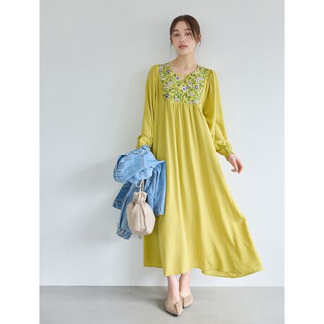 繊細なフラワー刺繍デザインが目を惹くロングワンピース