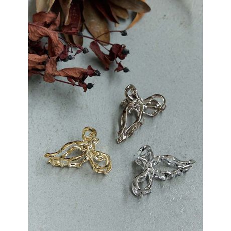 ニュアンス感のあるリボンデザインが印象的なミニヘアクリップ。ヘアアレンジに取り入れるだけで、女性らしい雰囲気に仕上げてくれます。メタルカラーで甘くなり過ぎず、カジュアルからきれいめまで幅広いスタイリングに活躍するアイテムです。