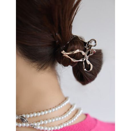 ニュアンス感のあるリボンデザインが印象的なミニヘアクリップ。ヘアアレンジに取り入れるだけで、女性らしい雰囲気に仕上げてくれます。メタルカラーで甘くなり過ぎず、カジュアルからきれいめまで幅広いスタイリングに活躍するアイテムです。