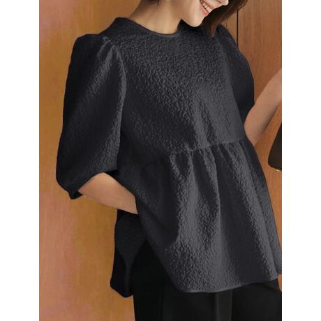 ペプラムデザインがフェミニンなふくれジャガードブラウス