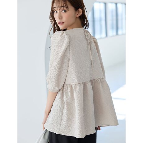 ペプラムデザインがフェミニンなふくれジャガードブラウス