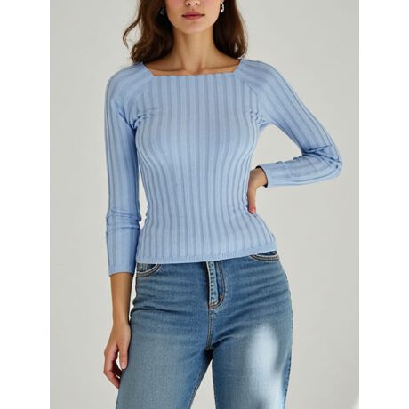 すっきりとしたシルエットが魅力のスクエアネックニット