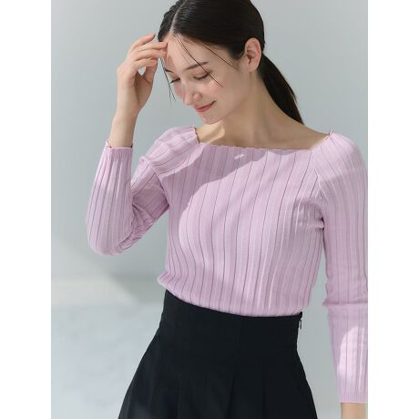 すっきりとしたシルエットが魅力のスクエアネックニット