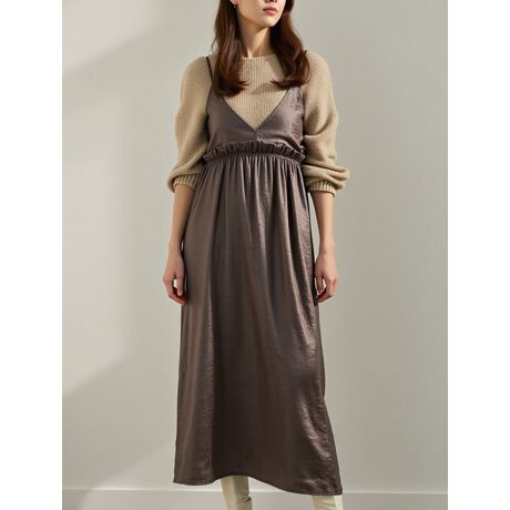 シワ加工ギャザー切替えキャミワンピース