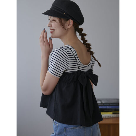 バックリボンが目を惹くリネンタッチキャミソール