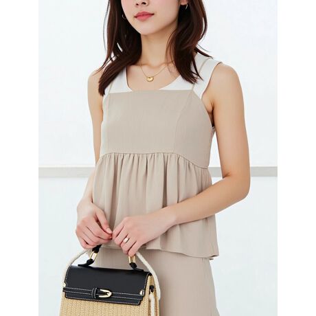 リネンタッチスパゲティショルダーフレアキャミソール