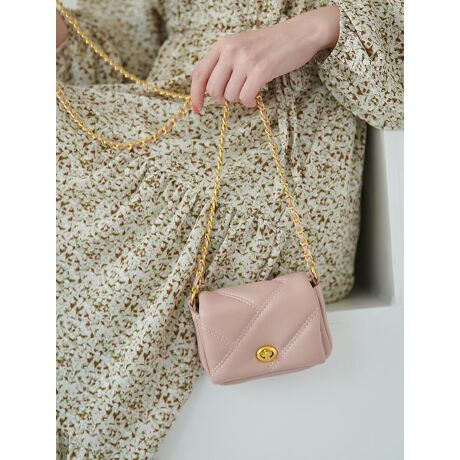 ふっくらとしたキルティングデザインが目を惹くミニバッグ。フロントのゴールドカラーのターンロックと、華奢なチェーンショルダーが上品な印象を与えてくれます。コンパクトなサイズ感が可愛らしく、アクセサリー感覚で取り入れたいアイテムです。