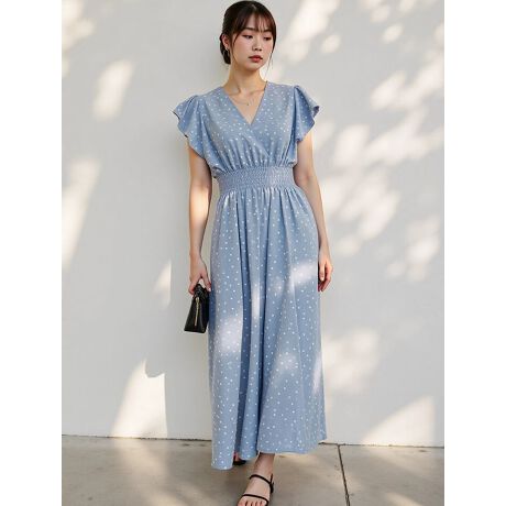 フリル袖が可愛いランダムドットオールインワン