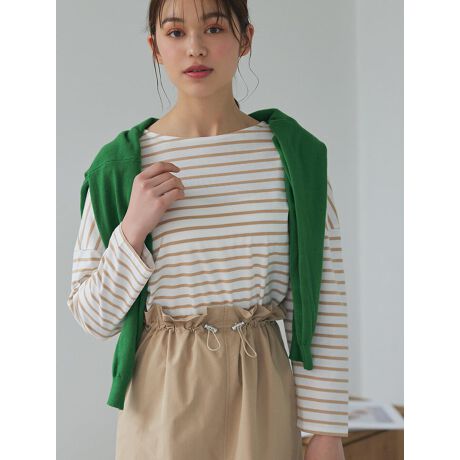 ボートネックが首元をすっきりと見せてくれるボーダー柄カットソー。前後差のある着丈に、ドロップショルダーのゆったりとしたシルエットがこなれ感を演出します。一枚着としてはもちろん、シャツやカーディガンなど羽織りアイテムのインナーにもおすすめです。