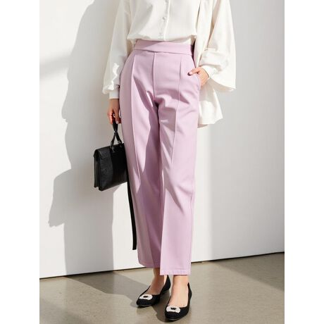 裾に向かって細くなるシルエットに、センターラインがスッキリ見えを叶えてくれるテーパードパンツ。ウエストの後ろ側はゴム仕様で、穿き心地の良さも嬉しいポイントです。シンプルなデザインで合わせるトップスを選ばず、幅広いスタイリングに活躍します。