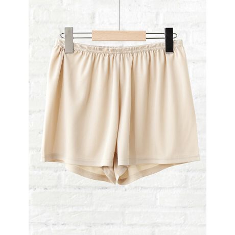 ベーシックなデザインで使い勝手も抜群なペチパンツ。ウエストゴムのイージー仕様と、肌触りの良い生地でさらりと着用できて快適な穿き心地です。すっきりとしたショート丈なので、ミニスカートにもパンツスタイルにも幅広く使える便利なアイテムです。