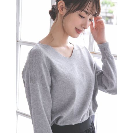 シンプルテイストが嬉しいニットは、ふんわりと柔らかなシルキータッチの素材で着心地バツグン。薄手の生地で軽やかに着こなせ、深めVネックで顔周りもすっきり見えます。トレンドに左右されないベーシックなアイテムは、1枚持っているとデイリーユースに活躍する事間違いなしです。