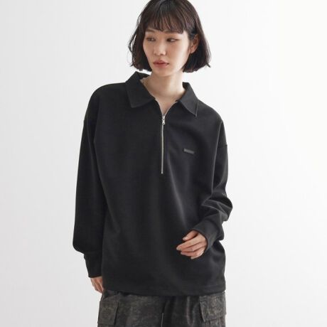 ハーフジップポロカットソー
