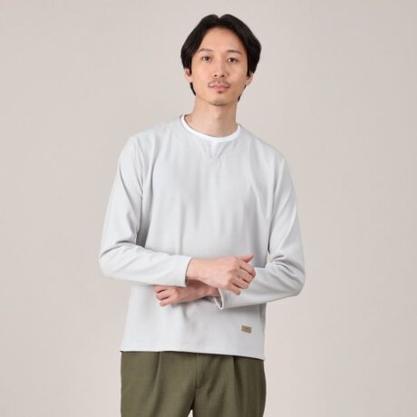 Tシャツ以上トレーナー未満の生地厚でシャツや羽織りのインナーにも着用しやすいアイテムになっています。