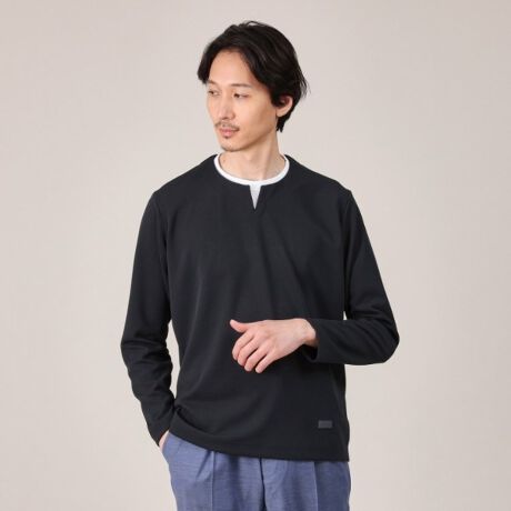 【Made in JAPAN】フェイクレイヤード キーネック カットソー