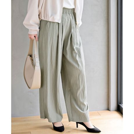 ゆったりワイドなシルエットにウエストのタックが体系カバーもかなえてくれます。