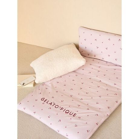 チェリー、ハート、小花柄 3種の定番柄で始める、春の新生活。gelato piqueらしい存在感のごろ寝クッションは、オンラインだけの限定アイテムです。リビングでちょっとお昼寝したい時に敷いたり、折り畳んで高さのあるクッションにしたり、使い道はさまざま。ミニサッカー生地を使用しているので、ロングシーズンご使用いただけます。色はハート柄のアイボリー、チェリー柄のピンク、小花柄のブルーの3色をご用意。同シリーズの寝具やアイマスク、クッションカバーと合わせてお楽しみください。