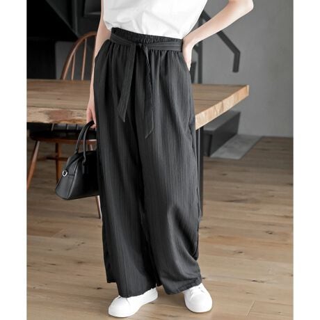 細かいしわ感がニュアンスを演出するイージーパンツ。