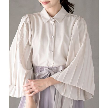 プリーツをあしらったフレアスリーブが魅力のブラウス。