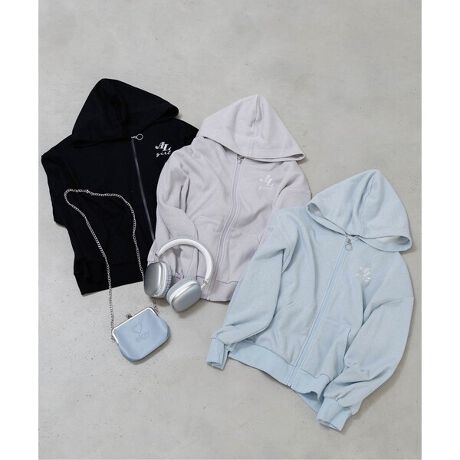 ほんのりキラキラしたラメが織り込まれた素材のパーカーは