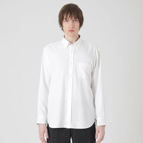 素材には上品な光沢感のあるポリエステルで織り上げたオックス生地を使用。ベーシックな組織感ながら抗菌防臭性、吸水速乾性、防しわ性に優れた機能性素材で快適な着心地を作り出します。