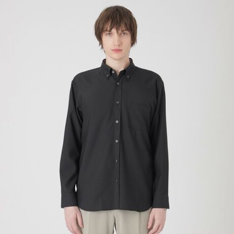 素材には上品な光沢感のあるポリエステルで織り上げたオックス生地を使用。ベーシックな組織感ながら抗菌防臭性、吸水速乾性、防しわ性に優れた機能性素材で快適な着心地を作り出します。