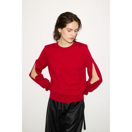 THROW by SLY【DESIGN HG TOPS】■POINT:肘にスリットデザインを取り入れたハイゲージのクルーネックニットトップス。■DETAIL:取り外し可能な肩パッド付きなので、着用するだけで大人っぽいモードな印象に。肘部分のスリットから腕を出して、シャツなどのレイヤードスタイルも楽しめるアイテムです。■STYLING:程よいサイズ感でべーシックな形なので、どんなボトムスとも相性抜群です。■FABRIC/MATERIAL:春先まで使えるハイゲージニット素材を使用しています。■透け感:なし■光沢感:なし■伸縮性:なし■裏地:なし※本品は、着用(使用)や洗濯クリーニングにより、毛羽立ちや毛玉が発生することがあります。連続着用はお避け下さい。毛玉が出来てしまった場合は、毛玉取り器またはハサミで丁寧にカットして取り除いて下さい。毛並みのある製品は表面を軽くブラッシングして毛並みを整えて下さい。※商品画像はサンプルのため、色味やサイズ、素材の混率等の仕様に変更がある場合がございますので、予めご了承ください。※一部予約商品につきましては生産上の都合によりお届け予定日や店頭発売と前後する場合もございます。※追加生産商品は、一部の店舗、通販で販売中の場合がございます。予めご了承下さい。