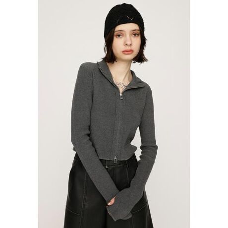 FRONT ZIP H/N RIB トップス