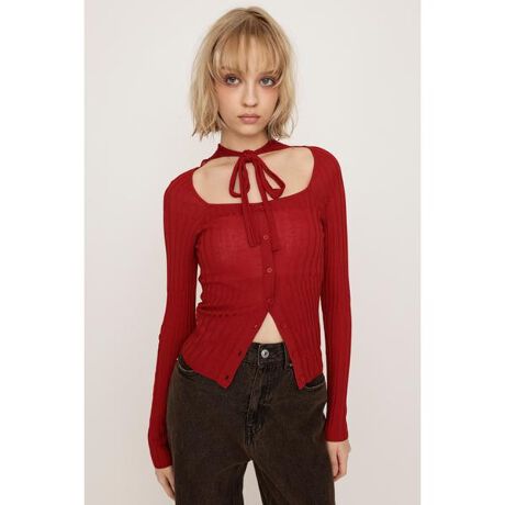 【TIE DESIGN HG TOPS】■POINT:タイ付きのニットトップス。スカーフのように首に巻いたり、リボン結びをしたりと、お好みのアレンジを楽しめるアイテムです。■DETAIL:体に沿ったシルエットと、デコルテラインを綺麗に魅せてくれる広めの首元が女性らしい印象に。■STYLING:一枚で様になるアイテムなので、様々なコーディネートに対応できます。あえてカジュアルなワイドパンツなどを合わせるのもおすすめ。■FABRIC/MATERIAL:柔らかいハイゲージニットを使用しています。■透け感:あり■光沢感:なし■伸縮性:なし■裏地:なし※本品は素材の特性上色落ちします。洗濯、クリーニング、着用(使用)時に他の衣類や雑貨、家具類に色移りする事があります。特に汗や雨等で湿った状態では、色落ちが顕著になります。白、淡色との組み合わせは避け、お取り扱いには十分ご注意下さい。本品は、デリケートな素材を使用しています。表面の粗い物や先端の鋭い物との摩擦により、引っ掛かり易く、引き出された糸が切れたり、毛羽立ちが生じる場合もありますのでご注意下さい。※商品画像はサンプルのため、色味やサイズ、素材の混率等の仕様に変更がある場合がございますので、予めご了承ください。※一部予約商品につきましては生産上の都合によりお届け予定日や店頭発売と前後する場合もございます。※追加生産商品は、一部の店舗、通販で販売中の場合がございます。予めご了承下さい。