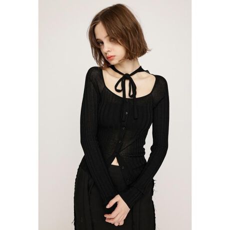 【TIE DESIGN HG TOPS】■POINT:タイ付きのニットトップス。スカーフのように首に巻いたり、リボン結びをしたりと、お好みのアレンジを楽しめるアイテムです。■DETAIL:体に沿ったシルエットと、デコルテラインを綺麗に魅せてくれる広めの首元が女性らしい印象に。■STYLING:一枚で様になるアイテムなので、様々なコーディネートに対応できます。あえてカジュアルなワイドパンツなどを合わせるのもおすすめ。■FABRIC/MATERIAL:柔らかいハイゲージニットを使用しています。■透け感:あり■光沢感:なし■伸縮性:なし■裏地:なし※本品は素材の特性上色落ちします。洗濯、クリーニング、着用(使用)時に他の衣類や雑貨、家具類に色移りする事があります。特に汗や雨等で湿った状態では、色落ちが顕著になります。白、淡色との組み合わせは避け、お取り扱いには十分ご注意下さい。本品は、デリケートな素材を使用しています。表面の粗い物や先端の鋭い物との摩擦により、引っ掛かり易く、引き出された糸が切れたり、毛羽立ちが生じる場合もありますのでご注意下さい。※商品画像はサンプルのため、色味やサイズ、素材の混率等の仕様に変更がある場合がございますので、予めご了承ください。※一部予約商品につきましては生産上の都合によりお届け予定日や店頭発売と前後する場合もございます。※追加生産商品は、一部の店舗、通販で販売中の場合がございます。予めご了承下さい。