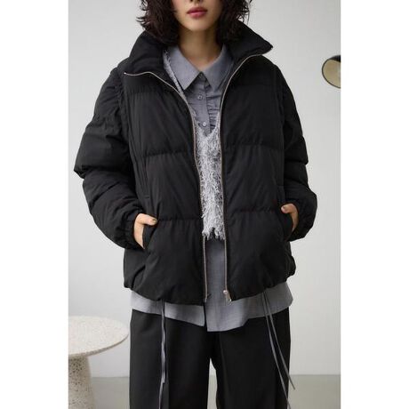 ■2WAY中綿スタンドコート■ポイント袖取り外しができる2WAY仕様の中綿コート。シンプルなスタンドデザインで程よいサイズ感の軽いアウターになります。■ディティール2WAY仕様のベストで着た時にもきれいに見えるようなディティールになっています。小顔効果にもなるようスタンドネックにしています。■スタイリングシンプルな中綿のコートになるのでどんなアイテムにも合わせやすいです。程よいサイズ感でルーズすぎない形なので中綿でもスタイルアップ出来るようなサイズ感にしています。スカートスタイルにもパンツスタイルにも合わせやすいアウターになります。■生地光沢感のあるポリエステルタフタを使用しています。透け感:なし裏 地:あり伸縮性:なし光沢感:あり