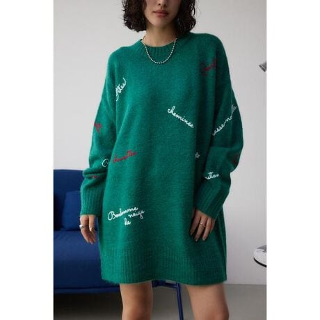 ■アソート刺繍ニット■ポイント遊び心のある刺繍デザインがポイントのニット。■ディティールフロントだけでなくバックや袖にも刺繍が散りばめられた、一枚でサマになるニット。刺繍のロゴは全てフランス語でクリスマスにまつわる言葉です。カラーによって違った配色の刺繍になっていて、お選びいただくカラーによって印象を変えることができます。Mサイズはヒップが隠れる着丈でワンピースとして着用できます。■スタイリングショート丈(Sサイズ)はどんなボトムとも相性◎。デニム合わせでカジュアルにも、スカート合わせでフェミニンにも。ロング丈(Mサイズ)はワンピースとしても。ロングブーツ合わせのコーディネートがおすすめです。■生地ストレッチ性のある柔らかな手触りの糸を使用し、しっかりと度目を詰めて編んだ素材です。透け感:なし裏 地:なし伸縮性:あり光沢感:なし