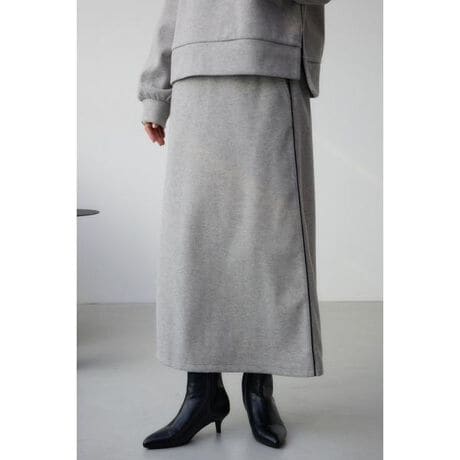 ■アッシュクウールライクスカート■ポイントウールライクな素材で脇にフェイクレザーでアクセントを出したナロースカート。素材は暖かくまた肌触りが良く、上質感のあるスカートです。■ディティール脇のフェイクレザーが高見えして見える点がポイント。またシルエットはややスリムですが動きやすい伸縮性のある素材もポイントです。■スタイリングショート丈のニットトップスにも相性が良く、様々なトップスアイテムと合わせられるスタイルアップボトムスです。■生地ポリエステル素材の圧縮素材を使用しています。透け感:なし裏 地:なし伸縮性:あり光沢感:ややあり
