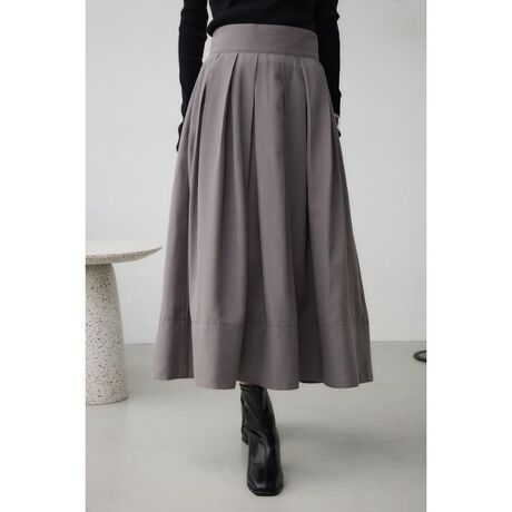 ■ボックスプリーツスカート■ポイント微起毛のかかった温かみのある素材を使用した、今季トレンドのボックスプリーツデザインのフレアスカートになります。■ディティールフレアのシルエットにこだわり、裾に太い切り替えを入れることで着用したときに綺麗なフレアシルエットが出るようなディティールになっています。ウエストは後ろだけゴム仕様にして着脱がしやすくなっています。■スタイリングコンパクト目なトップスにボリュームの出るフレアシルエットの相性が良くおすすめのスタイリングになります。ウォーム感のある生地を使用しているのでスウェットやカジュアルな素材との相性も良いです。今季はショート丈のアウターとのスタイリングもおすすめです。■生地微起毛ツイルを使用。透け感:なし裏 地:O/WHTのみあり伸縮性:なし光沢感:なし