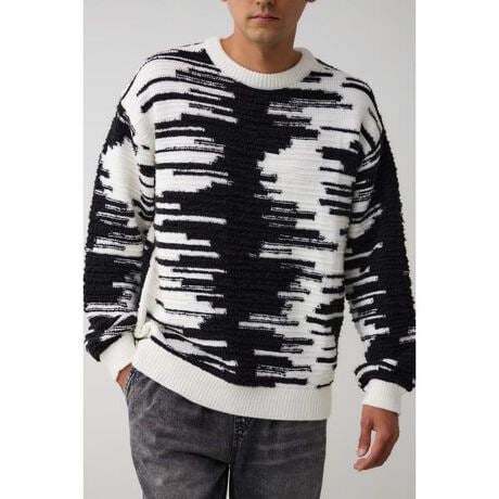 ■モザイクジャガードニット■ポイントオリジナルのモザイクジャガード柄が特徴的なニットです。■ディティールモザイクジャガードニットは、アクリル75%・ポリエステル12%・ナイロン9%を使用したオリジナル柄のニットトップスです。この素材は、肌触りが柔らかく、快適な着心地を提供します。また、透け感はなく安心して着用できるデザインとなっています。1サイズでベーシックなシルエットです。■スタイリングジーンズ合わせでカジュアルに、トラウザー合わせでキレイ目に、汎用性抜群な1着です。■生地ニットジャガードのオリジナル柄トップスです。透け感:なし裏 地:なし伸縮性:あり光沢感:なし