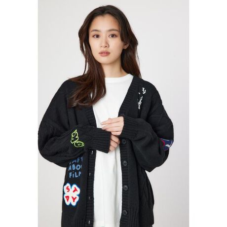 暖かみのあるミドルゲージのオーバーサイズカーディガン。ブランドらしいカラフルでポップな刺繍がポイントで、フラットな編みとケーブル編みを合わせて凹凸感を演出。落書きのようにランダムに落とし込んだロゴやモチーフを刺繍で施した豪華な一枚。大きめのサイズ感なので、フーディーやスウェットの上からでも羽織ることができ、使い勝手も抜群。ニットの雰囲気を壊さないように、刺繍は全て柔らく凹凸感の出るソフトなチェーン刺繍を使用しています。■ポケット:なし■裏地:なし■透け感:なし■伸縮性:あり※素材の特性上、毛玉などが発生した場合は、はさみなどできれいにカットしてください。風合いのよい柔らかいローゲージのニット商品ですので、長時間ハンガーに掛けておくと、伸びてしまう可能性がございます。こまめにハンガーから外すなど、取り扱いには十分ご注意下さい。