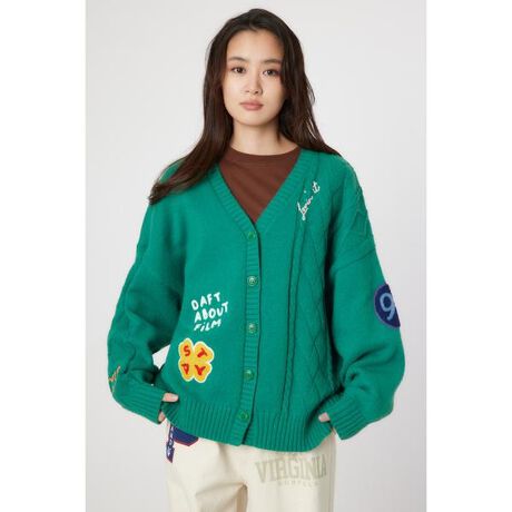 暖かみのあるミドルゲージのオーバーサイズカーディガン。ブランドらしいカラフルでポップな刺繍がポイントで、フラットな編みとケーブル編みを合わせて凹凸感を演出。落書きのようにランダムに落とし込んだロゴやモチーフを刺繍で施した豪華な一枚。大きめのサイズ感なので、フーディーやスウェットの上からでも羽織ることができ、使い勝手も抜群。ニットの雰囲気を壊さないように、刺繍は全て柔らく凹凸感の出るソフトなチェーン刺繍を使用しています。■ポケット:なし■裏地:なし■透け感:なし■伸縮性:あり※素材の特性上、毛玉などが発生した場合は、はさみなどできれいにカットしてください。風合いのよい柔らかいローゲージのニット商品ですので、長時間ハンガーに掛けておくと、伸びてしまう可能性がございます。こまめにハンガーから外すなど、取り扱いには十分ご注意下さい。