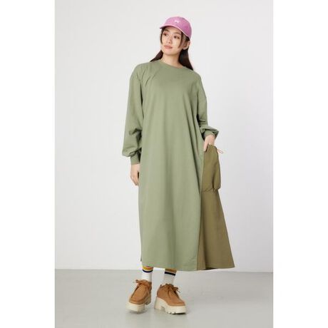 ミリタリーテイストを部分的に取り込んだ異素材ドッキングのワンピース。ゆったりとしたシルエットですが、身頃と両サイドで切替になっているので、スッキリとした印象に。配色のポケット部分の付属とネームがポイント。軽く滑らかな素材を使用しているので、ストレスフリーな着心地のアイテム。透け感がなく、シーズンレスで着用できる優れものです。■ポケット:あり■裏地:なし■透け感:なし■伸縮性:あり