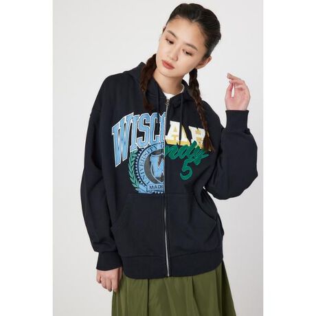 2つのグラフィックパーカーをリメイクドッキングしたようなデザインのフードジップパーカー。右側がヴィンテージ風のクラックプリント、左側にはツイルのアップリケで豪華な仕様に。程よくゆったりとしたサイズ感で、ニットの上にも羽織れるアイテムです。古着好きな方におすすめ。■ポケット:あり■裏地:なし■透け感:なし■伸縮性:あり※プリントの風合いやカラー及び位置には個体差が有りますが、二次加工特性によるものです。プリントを重ねるとくっついたり色移りの可能性がありますので、注意してください。プリント商品の為、着用・洗濯によリ白化する場合があります。