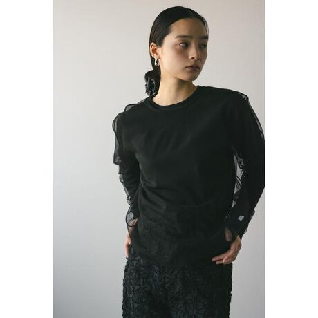 [型番:500ISS70-1151]ニットロンTとルーズなチュールTのセットアイテム。素材の重なり感がスタイリング映えする一枚です。別々にスタイリングも可能で、幅広いコーディネートを楽しめます。透け感チュールあり、ストレッチあり。【お手入れ方法】ドライクリーニング