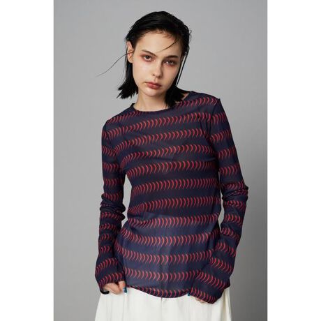オリジナルのChili pepper柄をヘリンドットサイ定番のメッシュインナーに落とし込んだアイテム。1枚ではもちろん、レイヤードしていただいても大活躍の1枚です。強撚ポリエステル素材でシアー感を出したなめらかなカットソー素材を使用しています。