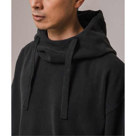 オーバーサイズデザインのフーディ型。シンプルながらボリューム感のあるデザインとハリのある生地感で、リラックス感がありながらもこなれた印象に。高めのネック部分や、ドローストロングの太さも程よいデザインアクセントになっています。セットアップでの着用もお勧めです。
